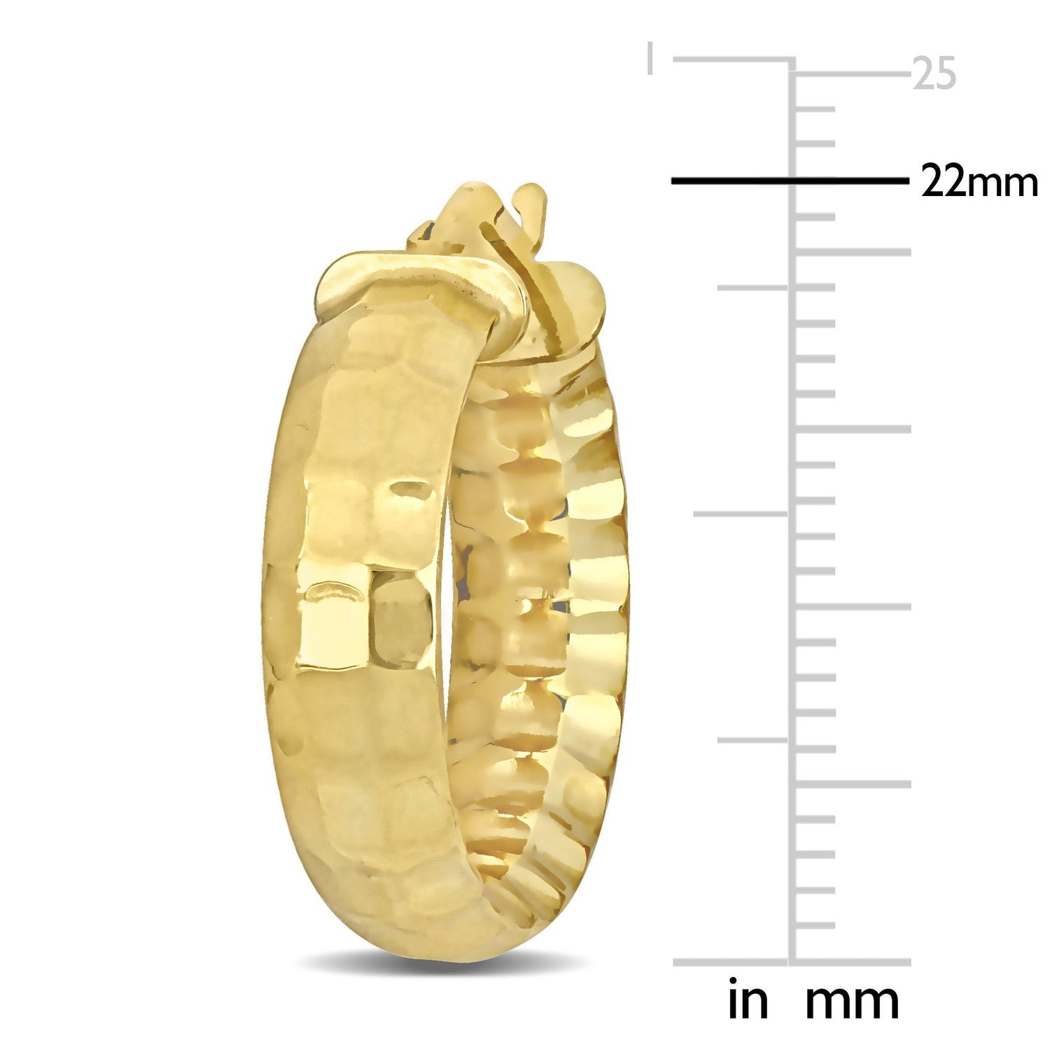 Crafted in 14K yellow gold. Features a faceted hoop design. Secured with clip-in closures. Diameter: 22 mm.