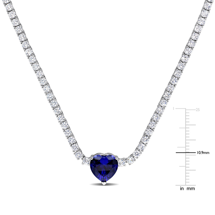 18 CT TGW Heart Shaped Created Blue Sapphire and Created White Sapphire Tennis Necklace in Sterling Silver