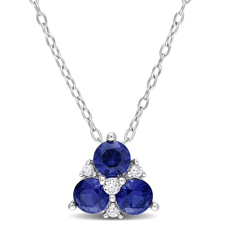 1 1/2 CT TGW Created Blue Sapphire and Created White Sapphire 3-Stone Pendant with Chain in Sterling Silver