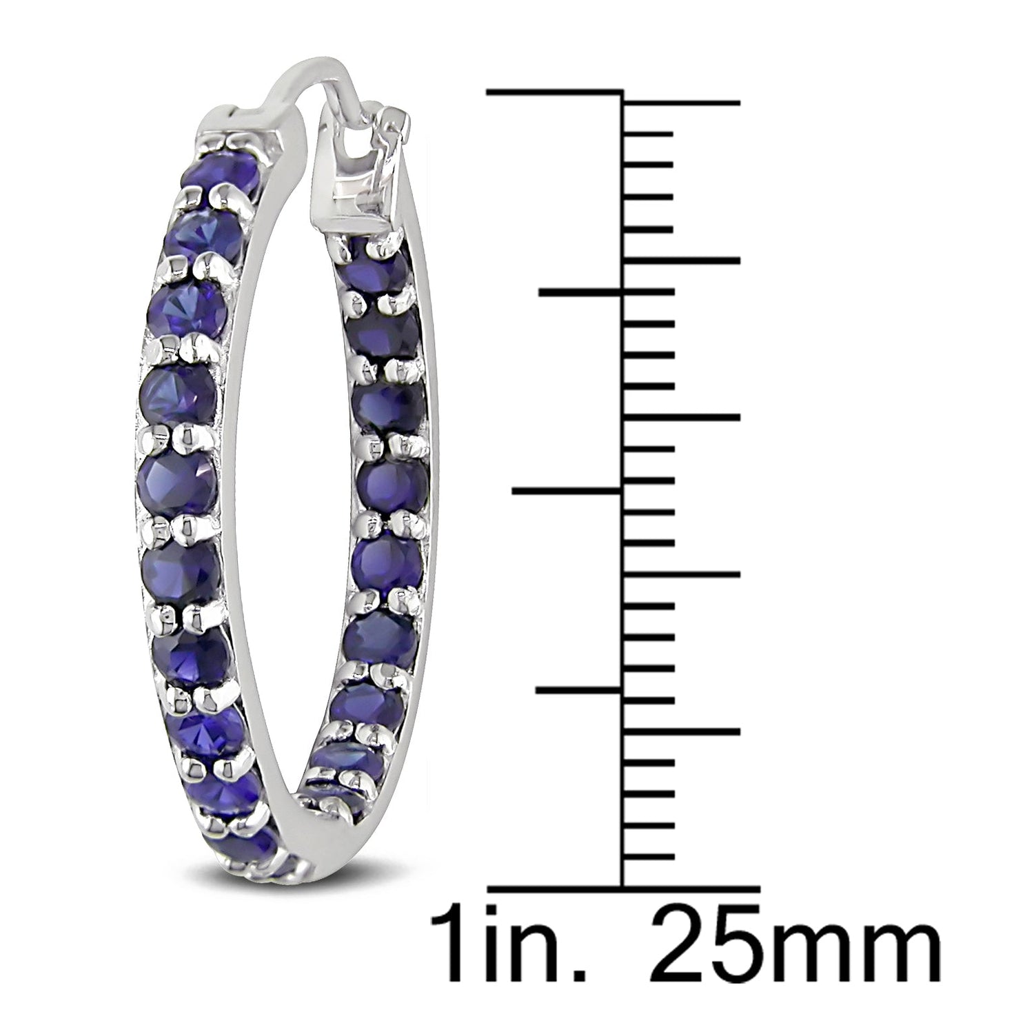 Crafted in sterling silver. Features 40 round-cut (2.5 mm) created blue sapphire gemstones in an inside-outside setting. Secured with clip-in closures. Total gemstone weight: 3.6 carats.