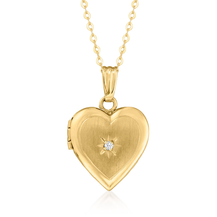 Diamond-Accented Heart Locket Necklace in 10kt Yellow Gold