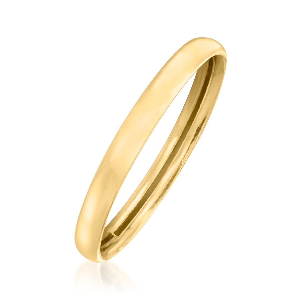 Handcrafted in 10kt yellow gold with a polished finish. Measures 1/8 inch in width. Weighs approximately 0.4 grams. Available in size 5.