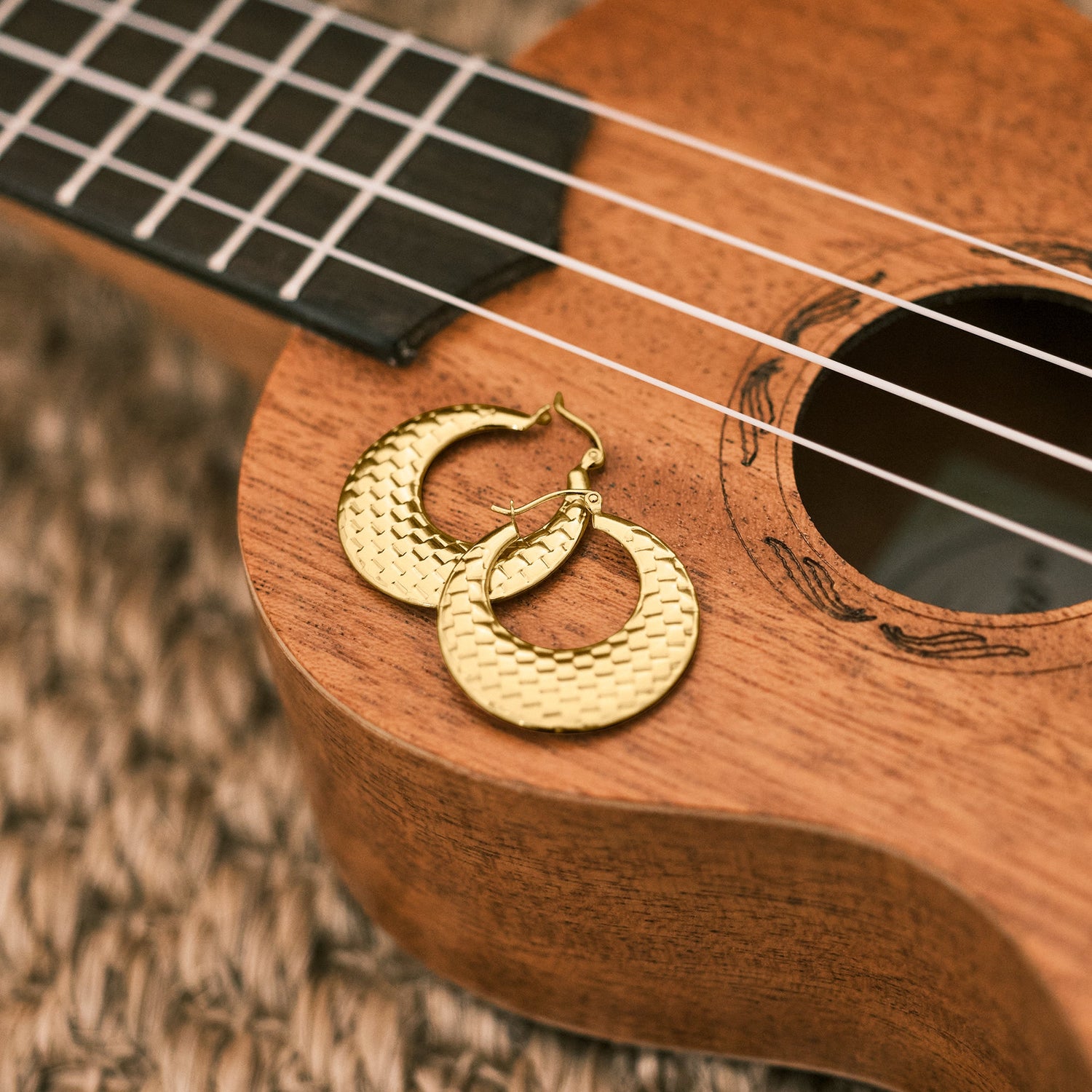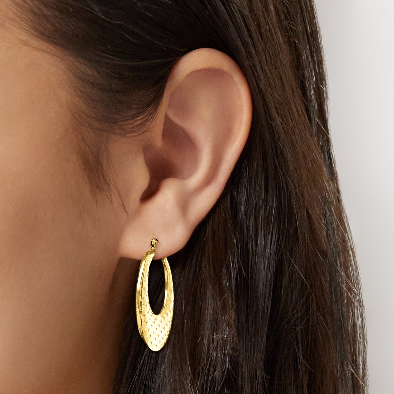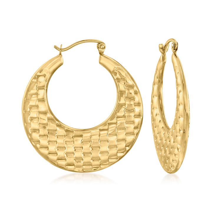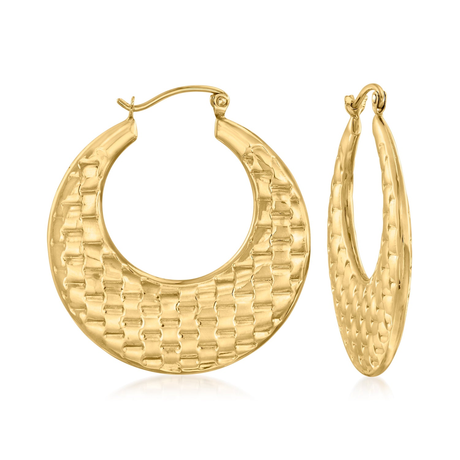 10kt Yellow Gold Basketweave-Pattern Hoop Earrings