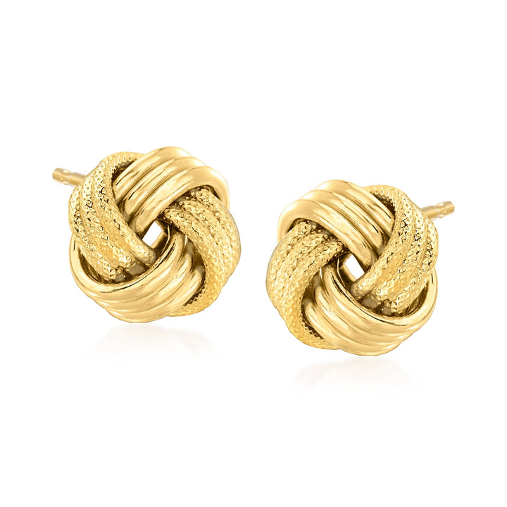 These Italian Love Knot Earrings by Canaria symbolize unity and timeless elegance. The interwoven design blends textured and polished finishes, creating a sophisticated look that complements both casual and formal styles.