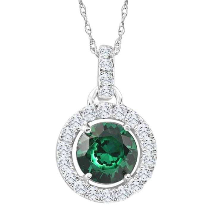This 1 1/2 Ct. T.W. Emerald and Diamond Halo Pendant in 10kt White Gold by Pompeii3 exudes elegance. A vivid oval emerald is encircled by a sparkling halo of round diamonds, creating a timeless and sophisticated centerpiece. Suspended from a delicate chain, this necklace is a true classic.