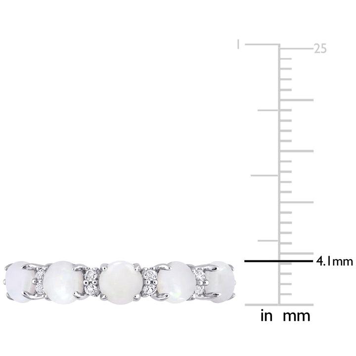 1 CT TGW Opal and White Topaz Semi Eternity Ring in Sterling Silver