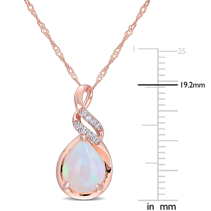 2 CT TGW Ethiopian Blue-Opal and Diamond-Accent Twist Pendant with Chain in 10K Rose Gold
