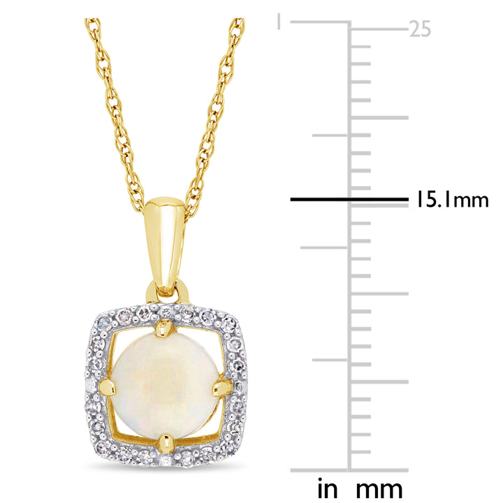 Opal and 1/10 CT TW Diamond Floating Square Halo Necklace in 10K Yellow Gold