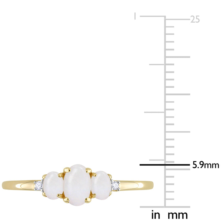 2/5 CT TGW Opal and Diamond Accent 3-Stone Ring in 10K Yellow Gold