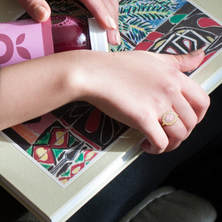 This 2 CT TGW Oval-Cut Yellow Ethiopian Opal and 1/10 CT TW Diamond Halo Ring by Mimi & Max is a radiant blend of warmth and brilliance. The golden Ethiopian opal is embraced by a dazzling halo of diamonds, while delicate beaded detailing adds depth and dimension. A statement of sophistication, this ring pairs beautifully with both modern and vintage-inspired jewelry.