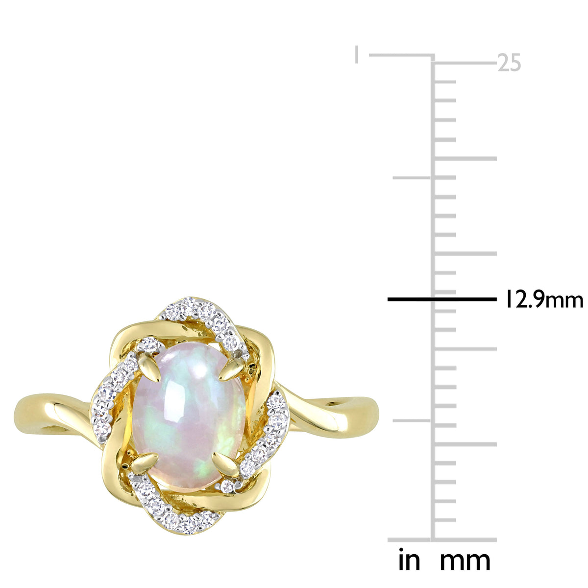 3/4 CT TGW Ethiopian Blue Opal and 1/10 CT TW Diamond Swirl Ring in 10K Yellow Gold