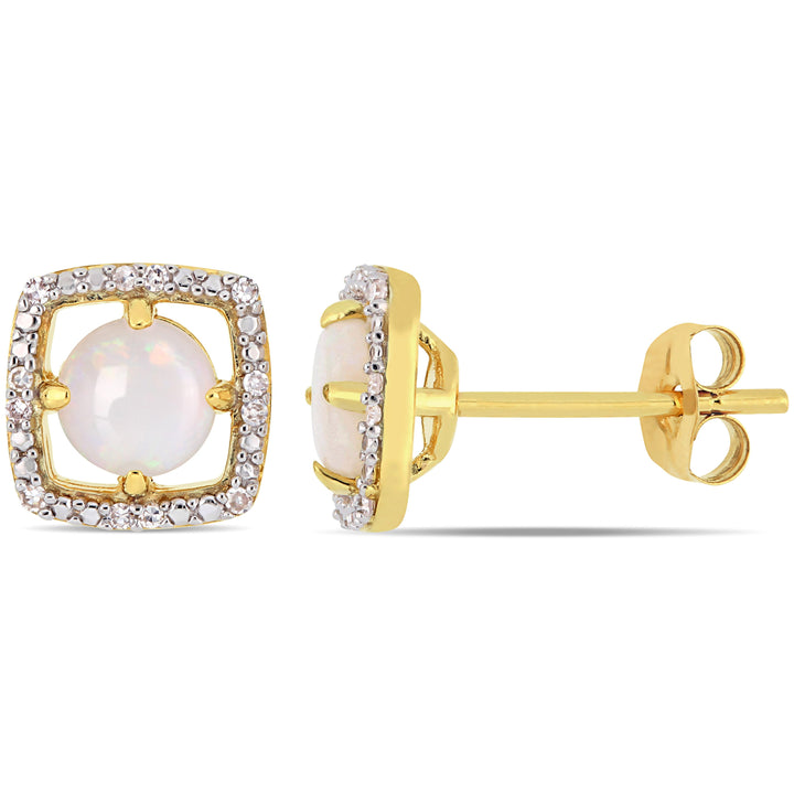 Opal and Diamond Accent Floating Square Halo Stud Earrings in 10K Yellow Gold
