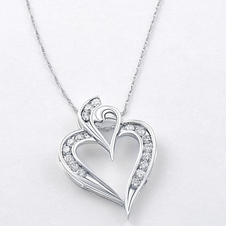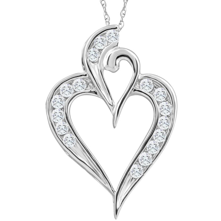 10K White Gold 1/2Ct TW Real Diamond Heart Pendant Necklace 1' Tall
