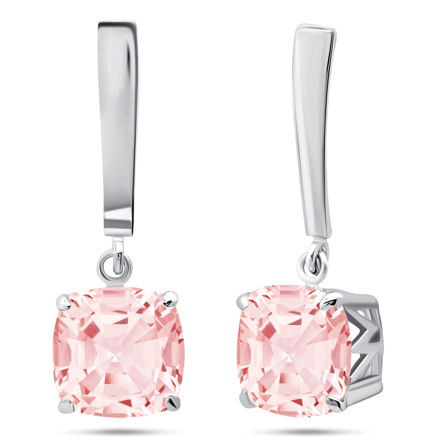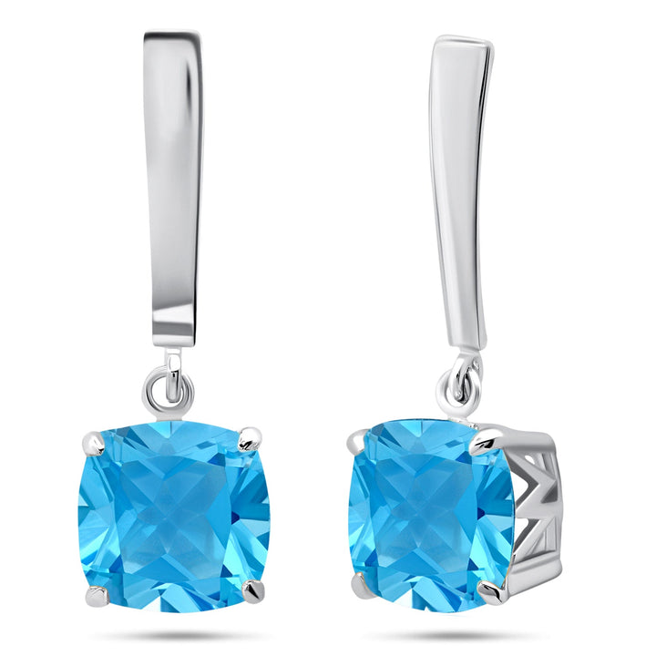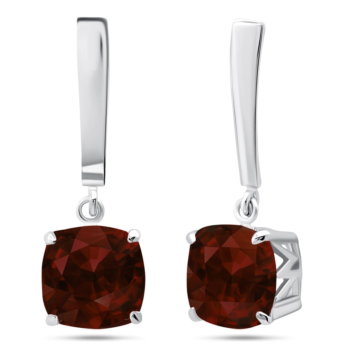 Sterling Silver 8mm Cushion Cut Gemstone Dangle Drop Earrings