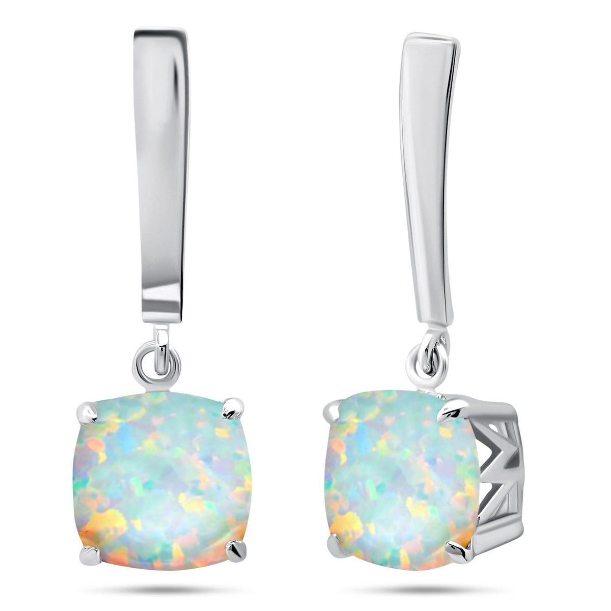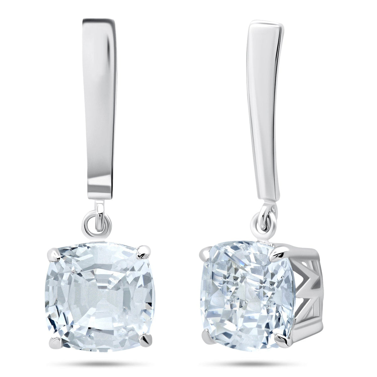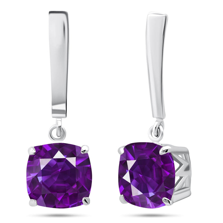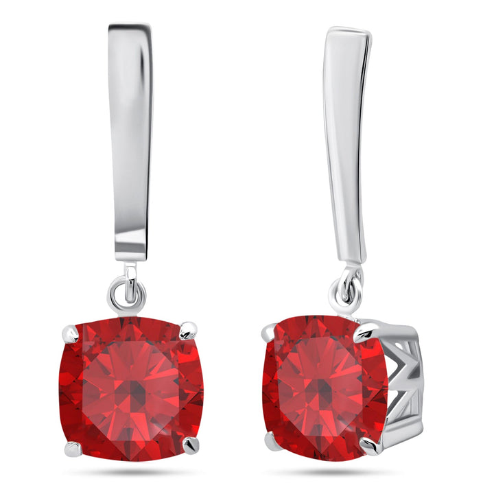 Sterling Silver 8mm Cushion Cut Gemstone Dangle Drop Earrings