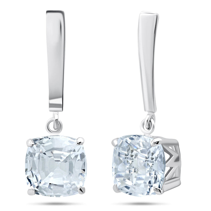 Handcrafted in sterling silver with 8mm cushion-cut sapphire gemstones. Birthstone for September. Linear drop earring style. Secured with a classic stud post.