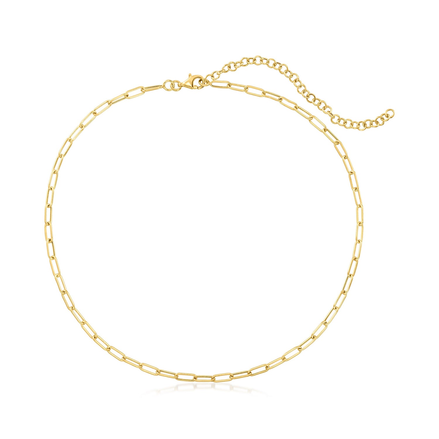 3mm 10kt Yellow Gold Paper Clip Link Choker Necklace