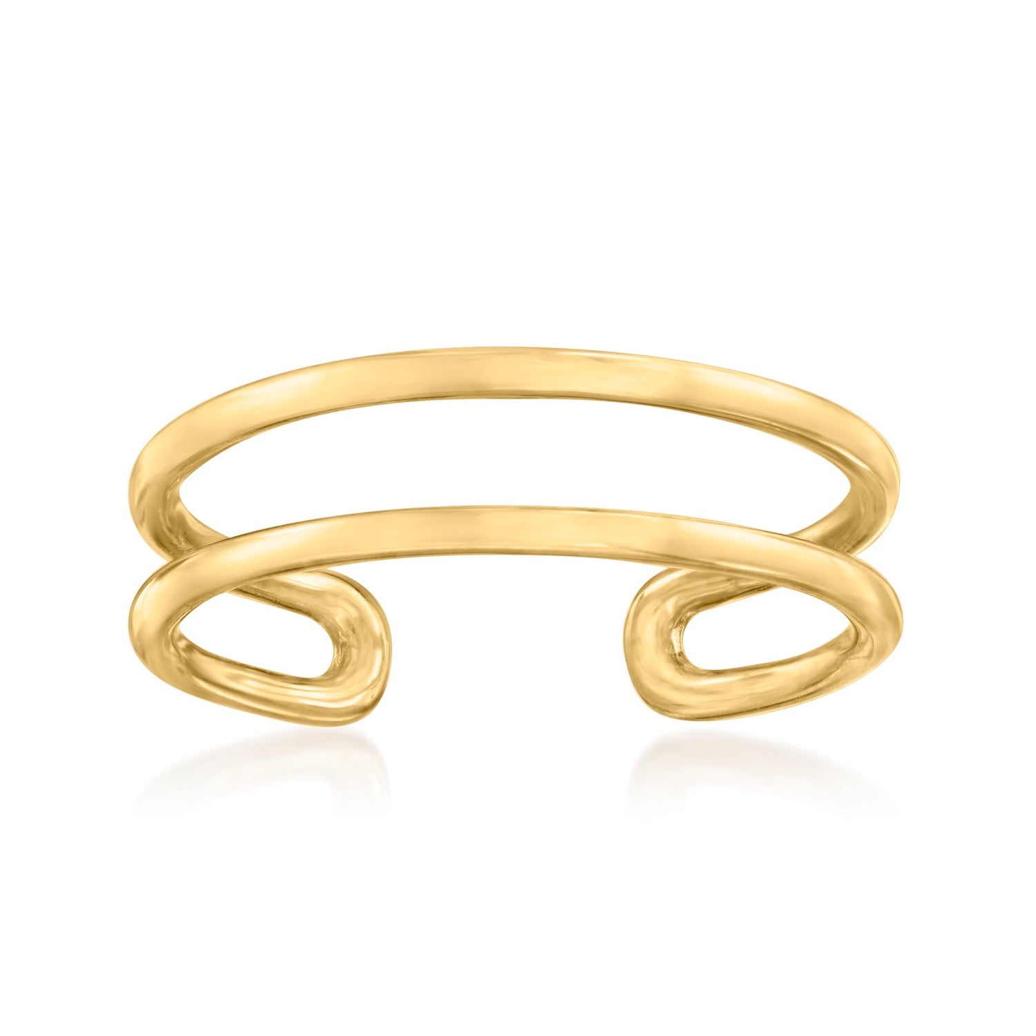 Crafted in 10kt yellow gold, this toe ring features a two-row design with a polished finish. The ring measures 1/8 inch wide and is adjustable for a comfortable fit. Weight: 0.8 grams.