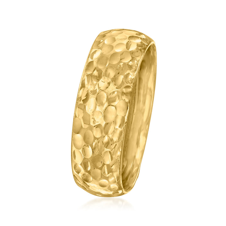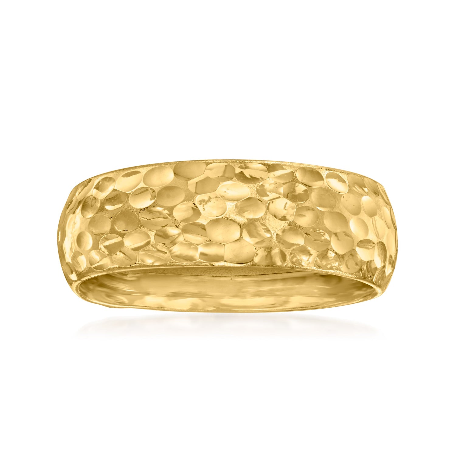 10kt Yellow Gold Hammered Round Groove-Pattern Ring
