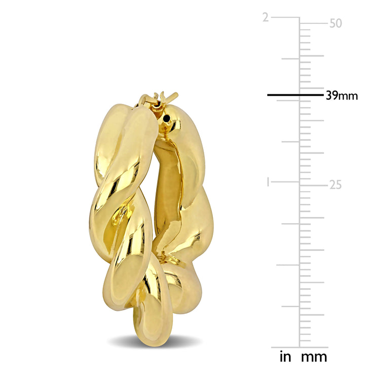 Crafted in yellow plated sterling silver, these hoop earrings feature a 39mm-wide twisted design. Secured with clip-back closures for a secure and polished finish.