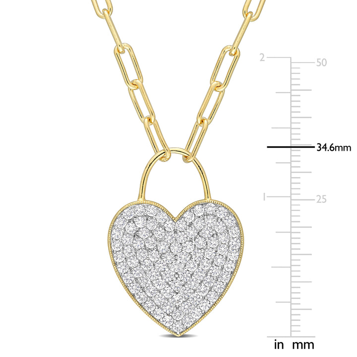 4 1/2 CT TGW Created White Sapphire Heart Pave Pendant with Chain in Yellow Plated Sterling Silver