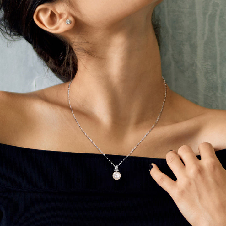 8.5-9 MM White Freshwater Cultured Pearl and 5/8 CT TGW Created White Sapphire Solitaire Pendant with Chain in Sterling Silver