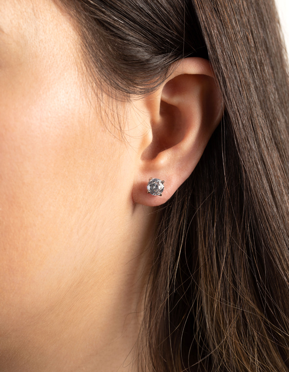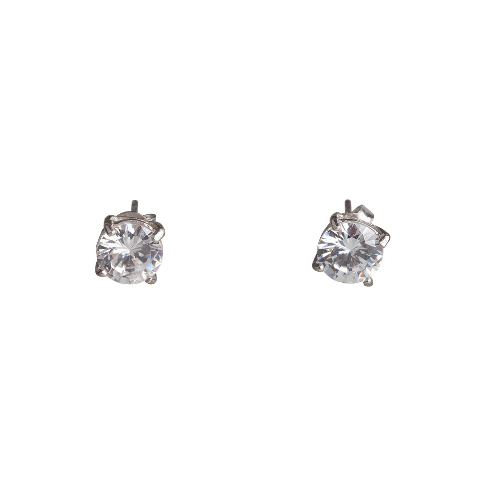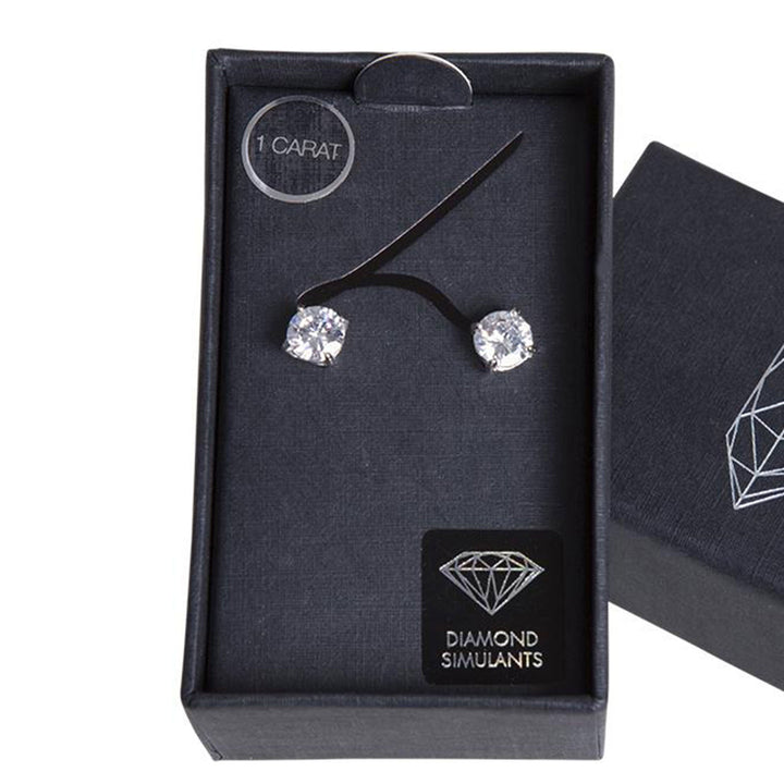 Crafted in metal with 1ct round crystal diamond simulants (good-cut, round-shape). Earring size: 7mm (L) x 7mm (W). Weight: 1g (single earring).