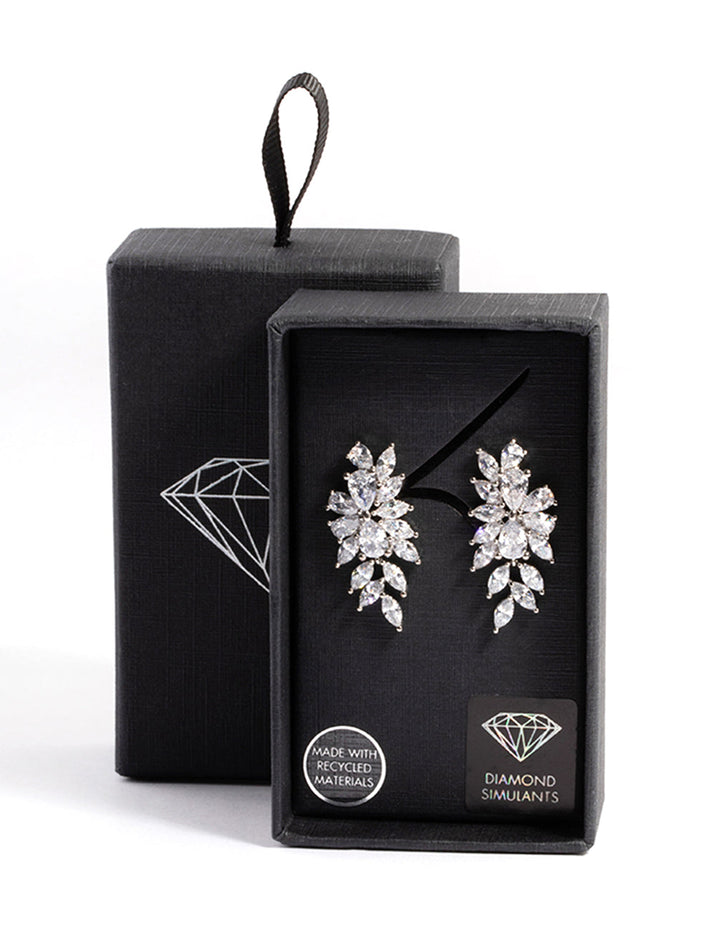 These Rhodium Diamond Simulant Floral Drop Earrings by Lovisa offer the brilliance and sparkle of diamonds, without the cost. Crafted with diamond simulants that are lab-created to replicate real diamonds, these earrings feature a floral drop design that adds an elegant touch to any outfit. Perfect for both day and night wear, they are ideal for those seeking affordable luxury.
