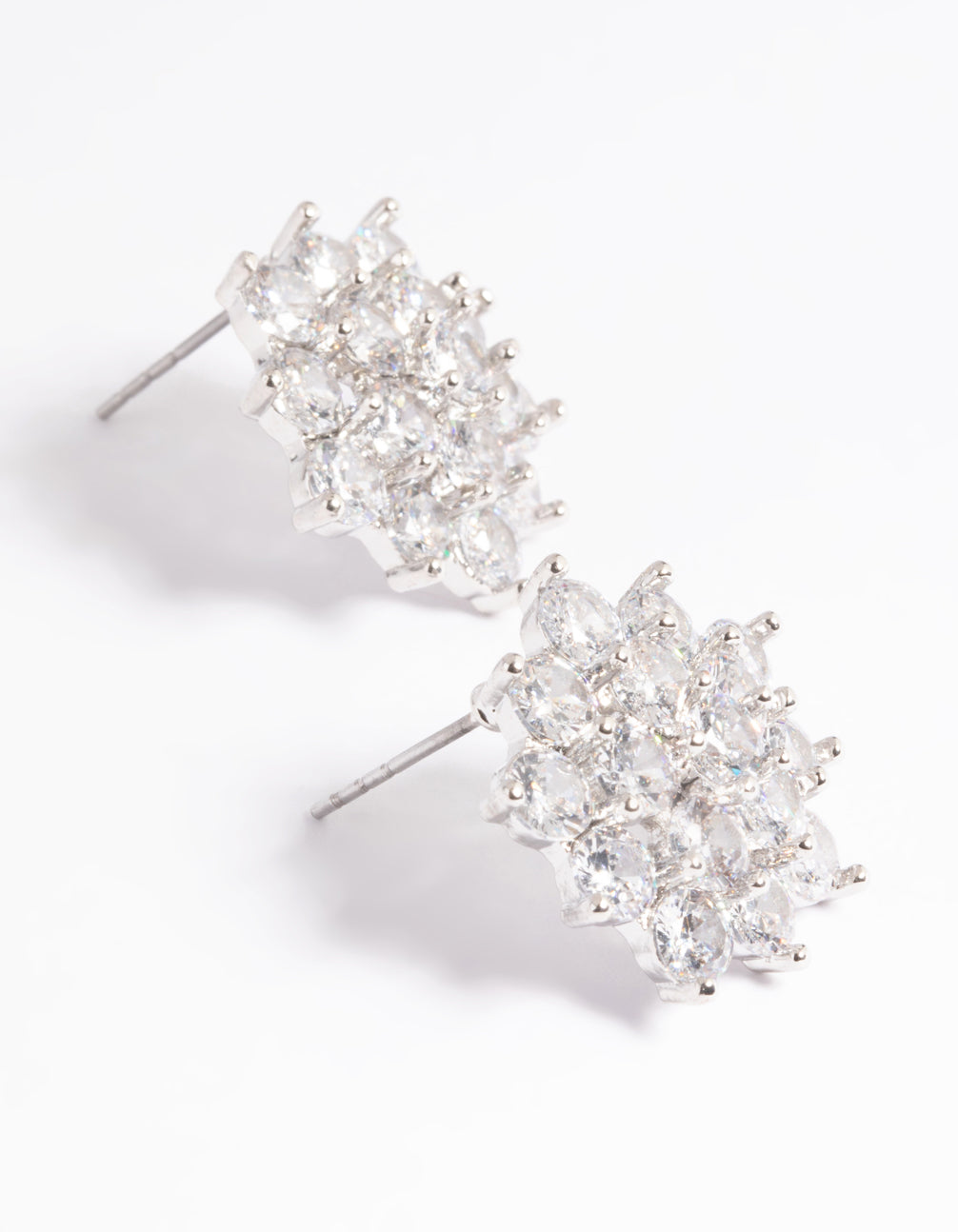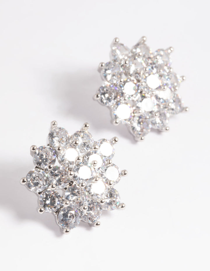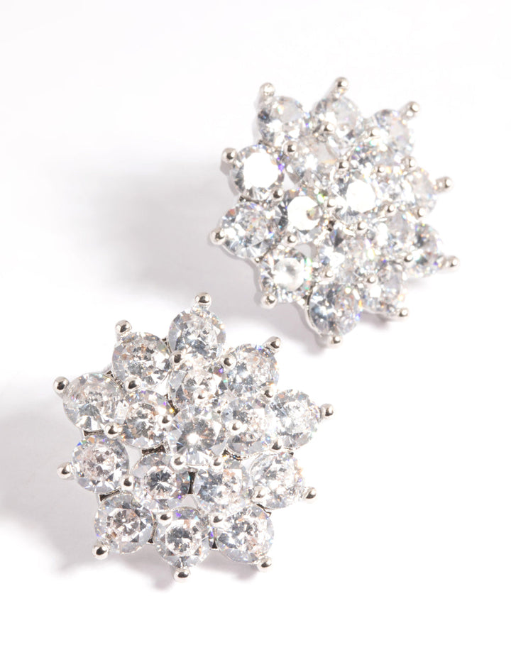 Rhodium Pave Flower Stud Earrings