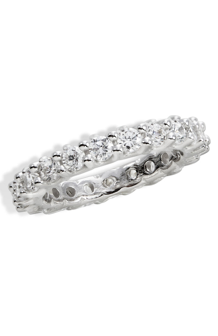 The Sterling Silver White CZ Ring from Savvy Cie is a stunning piece that adds sparkle to any look. The sterling silver band is adorned with cubic zirconia stones, creating a luxurious, all-around shimmer. With its timeless design, this ring is a perfect addition to any collection and is sure to catch the eye on any occasion.