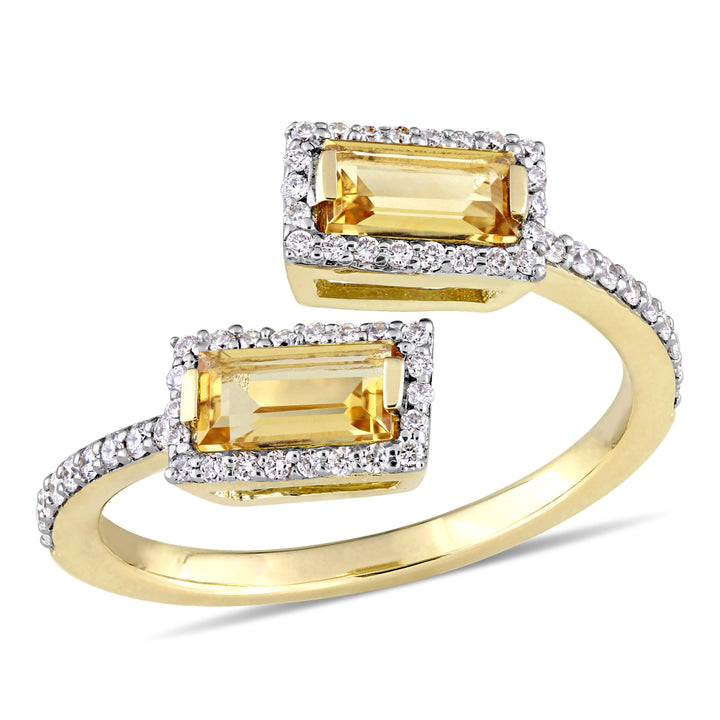 3/4 CT TGW Baguette Cut Citrine and 1/4 CT TW Diamond Open Ring in 14k Yellow Gold