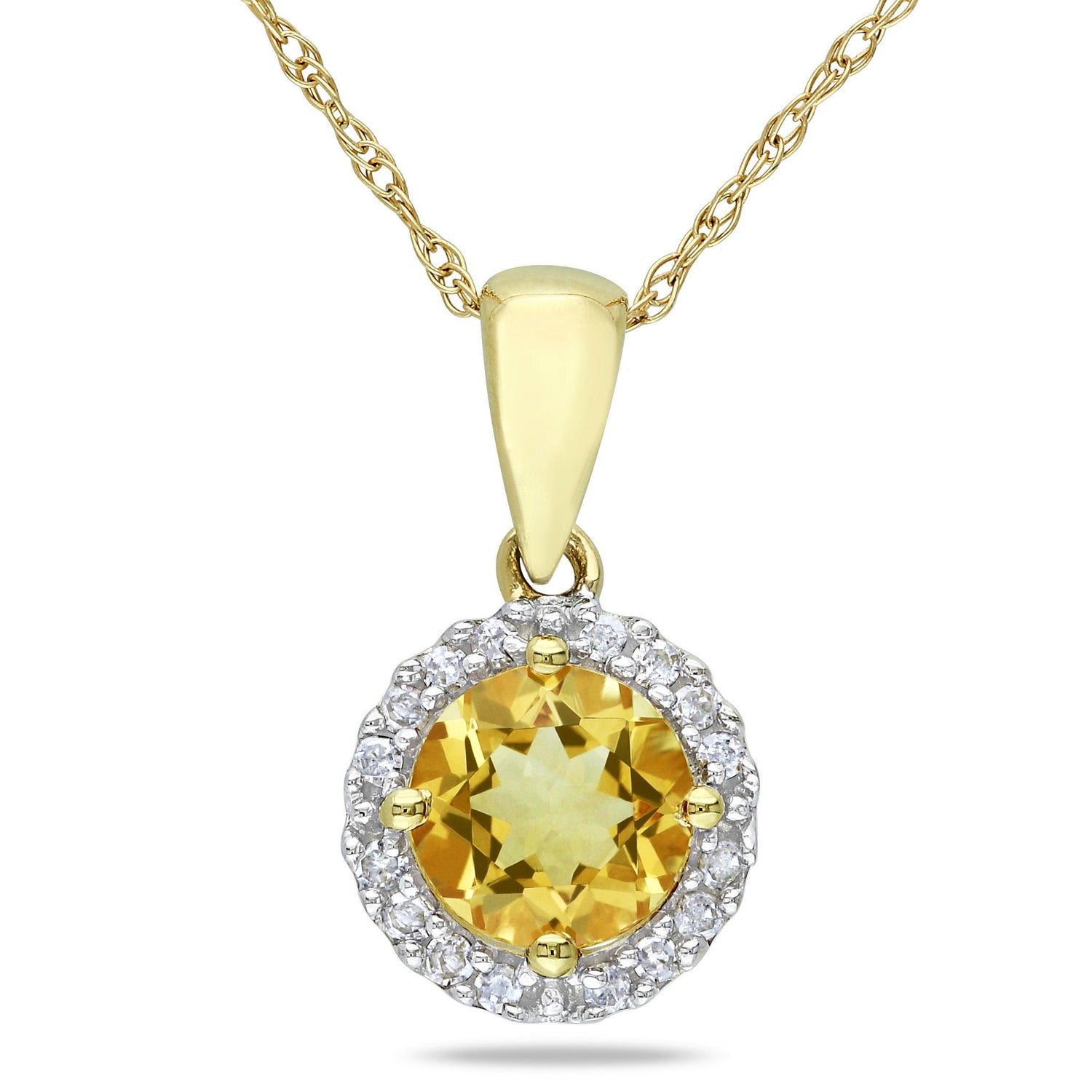Crafted in 10K yellow gold with a 6mm round-cut citrine and 16 round-cut, buttercup-set diamonds (G-H color, I2-I3 clarity, 1/10 ct TW). Suspended from a 17-inch rope chain with a spring-ring clasp.