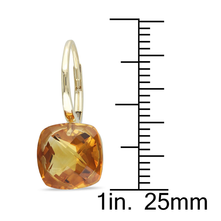 8 1/2 CT TGW Cushion Cut Checkerboard Madeira Citrine Leverback Earrings in 14k Yellow Gold