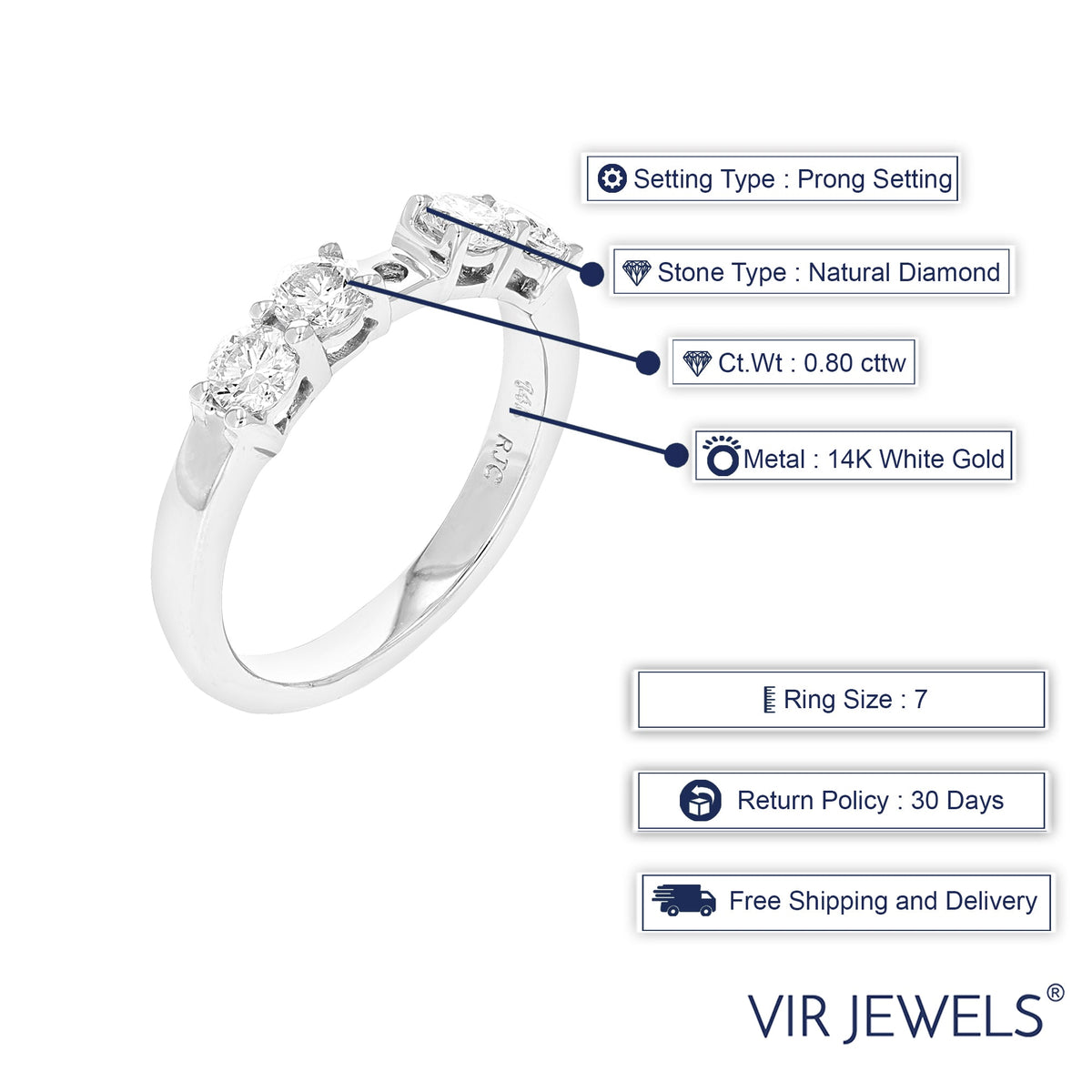 This 0.80 cttw Semi Mount Diamond Engagement Ring by Vir Jewels features four dazzling natural diamonds set in 14K white gold. Designed to fit a 0.70 cttw round diamond, this semi-mount ring offers a stunning foundation for your engagement ring, creating a sophisticated and timeless statement.
