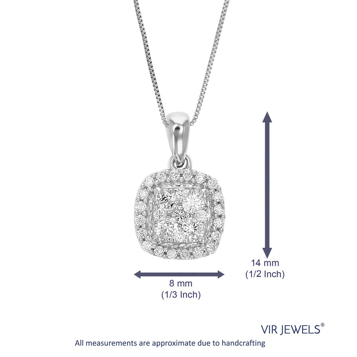 This 1/4 cttw Lab Grown Diamond Cushion Cluster Pendant Necklace by Vir Jewels is a beautiful statement piece crafted in .925 sterling silver. The pendant features 29 round-cut lab-grown diamonds arranged in a cushion cluster design, highlighting their brilliance in a prong setting. The 1/4 cttw diamonds, with their H-I color and SI1-SI2 clarity, are identical in their chemical, optical, and physical properties to natural diamonds, making them a responsible and valuable choice. The sterling silver setting enhances the sparkle of the diamonds, making it a perfect addition to any outfit. With its elegant design, this pendant necklace is also an ideal gifting option.