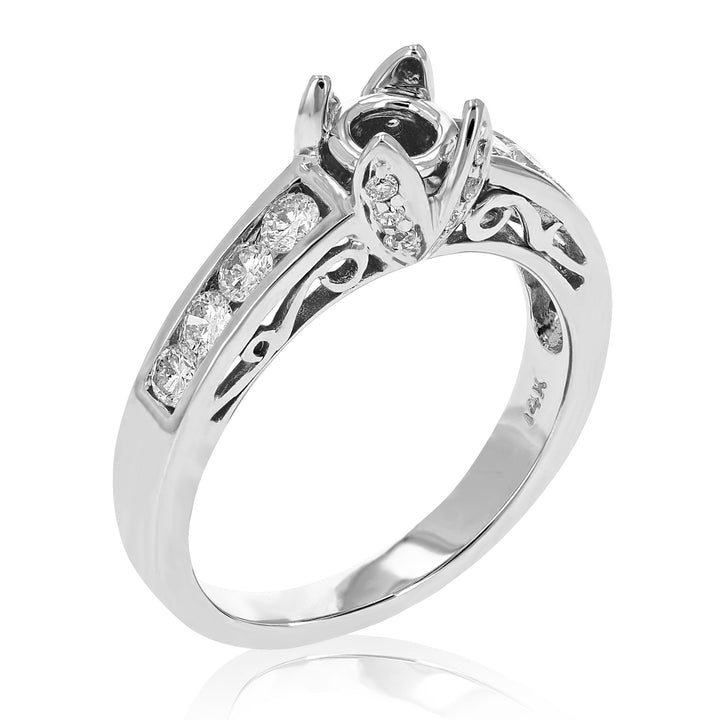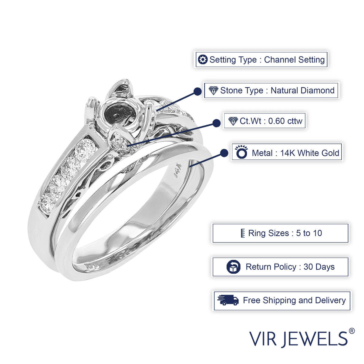 0.60 cttw Semi Mount Diamond Wedding Bridal Set 14K White Gold Round