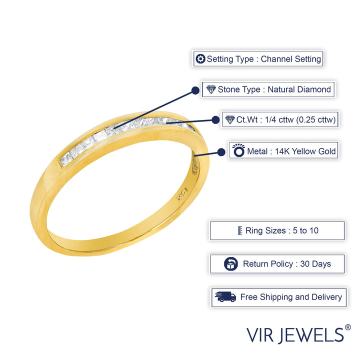 1/4 cttw Princess Cut Diamond Wedding Band 14K Yellow Gold Channel Set