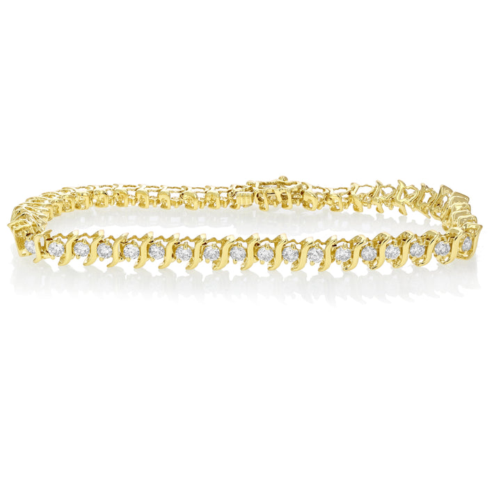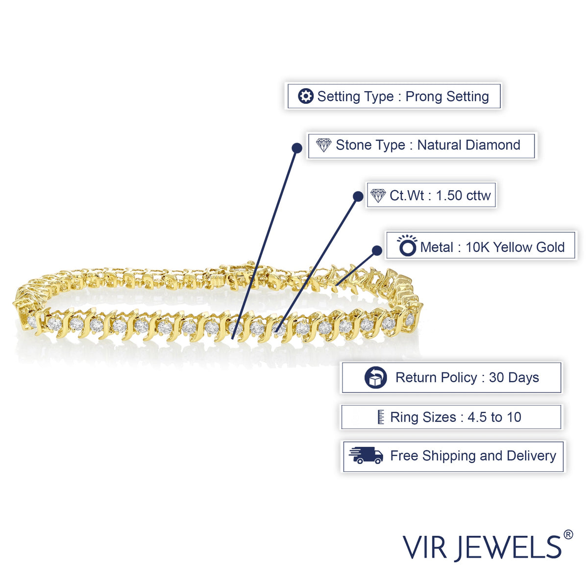 14K yellow gold with 1.50 cttw diamonds (50 stones). Clasp: Box and tongue safety.