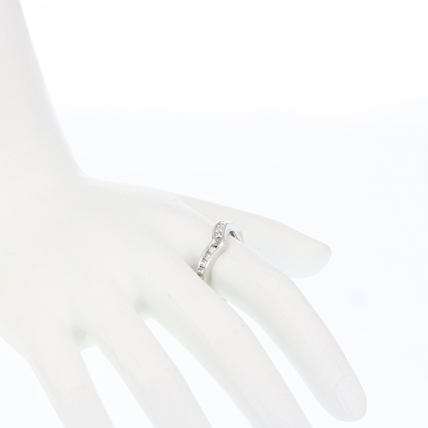 14K white gold, 1/2 ct. t.w. princess-cut diamonds, channel setting, 11 diamonds.