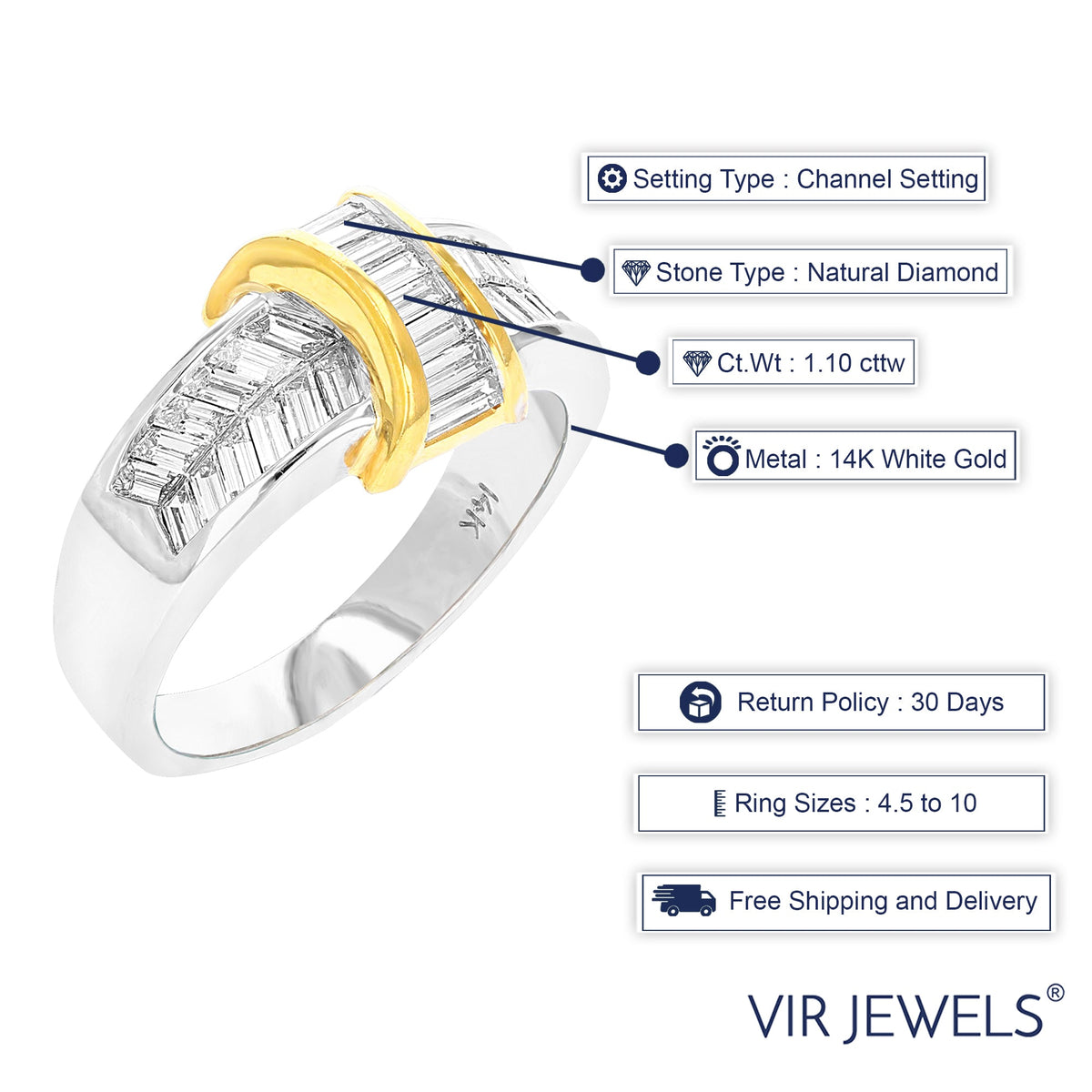 This 1.10 Cttw Baguette Diamond Wedding Band by Vir Jewels combines elegance with timeless beauty. Crafted in 14K yellow and white gold, the band features 33 baguette diamonds set in a channel setting, totaling 1.10 cttw. This wedding band is perfect for couples looking for a sparkling symbol of their commitment, offering a sophisticated design that stands the test of time.