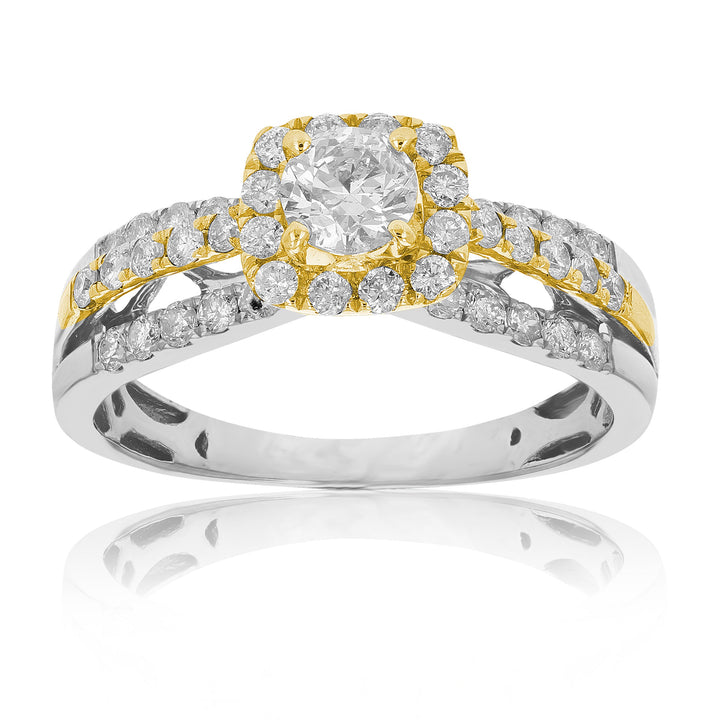 1 cttw Diamond Engagement Ring 14K Two Tone White and Yellow Gold Bridal