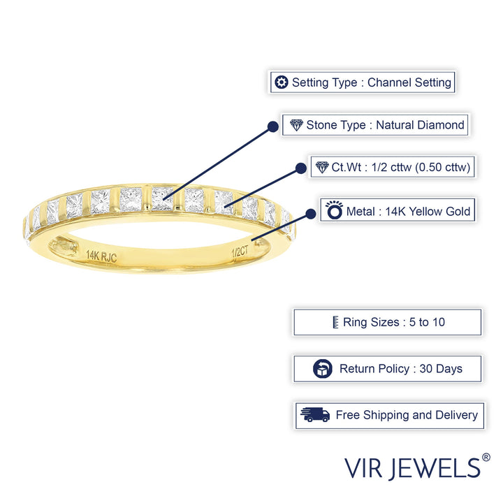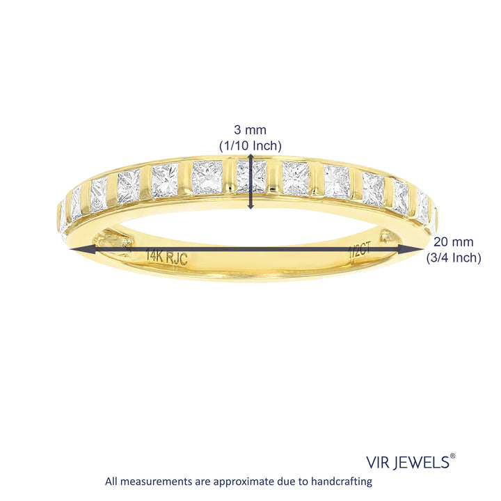 1/2 cttw Princess Cut Diamond Wedding Band 14K Yellow Gold 13 Stones Channel Set