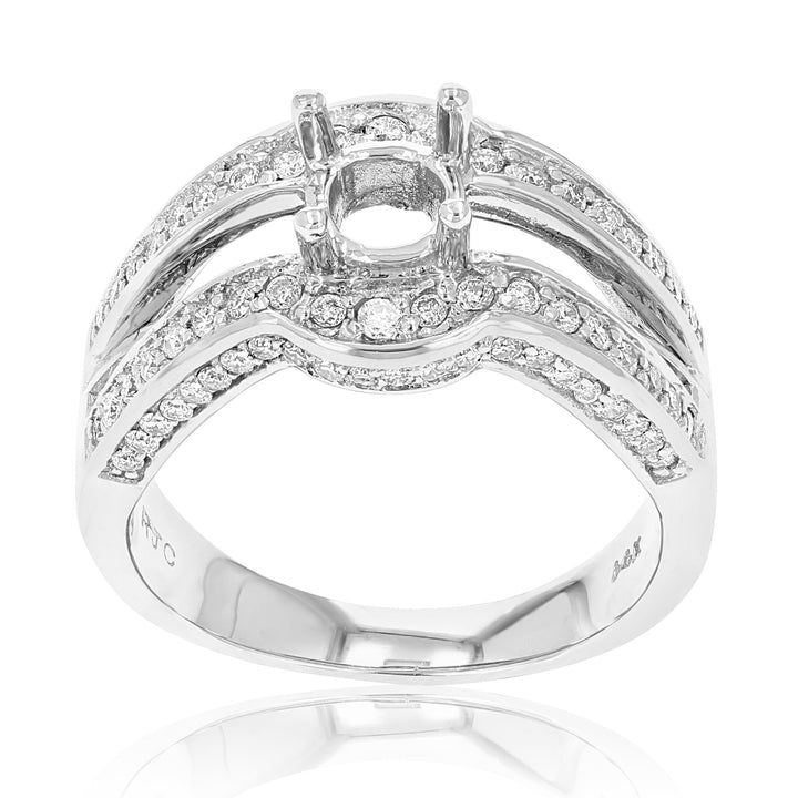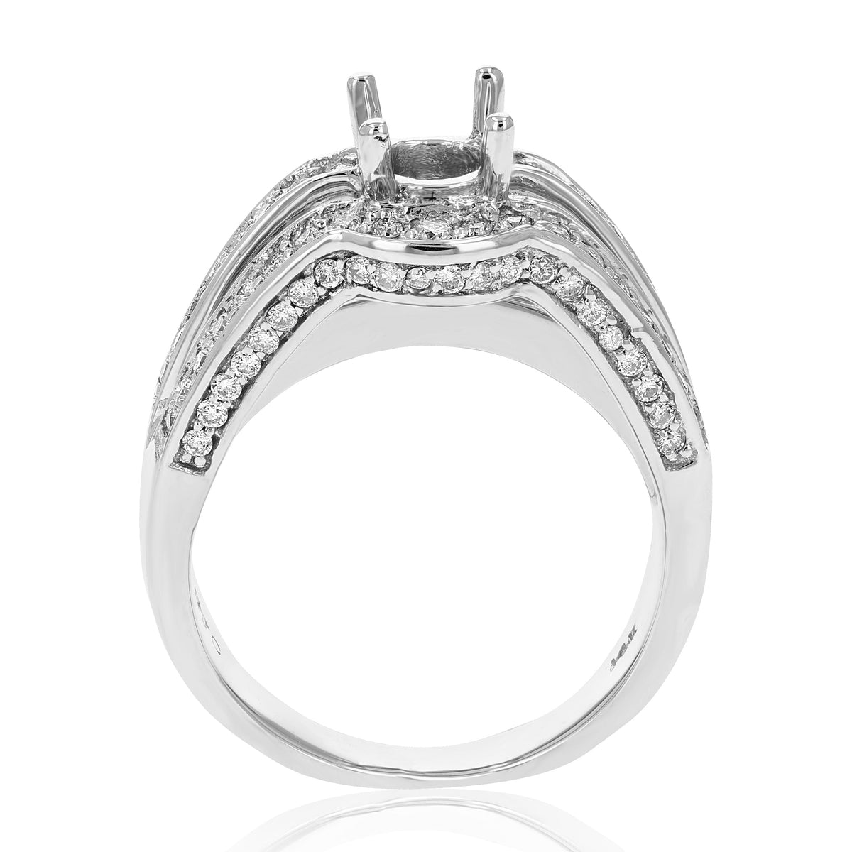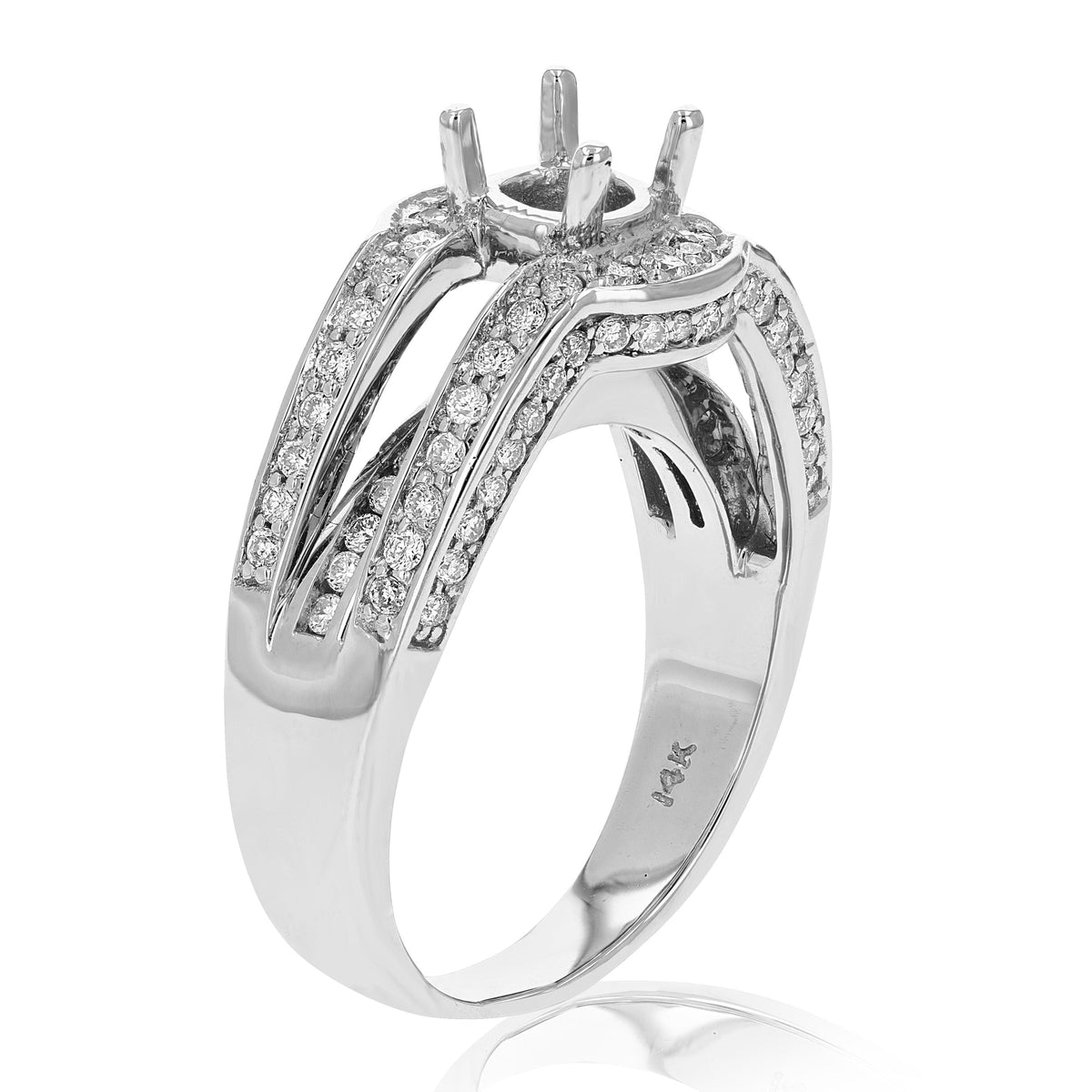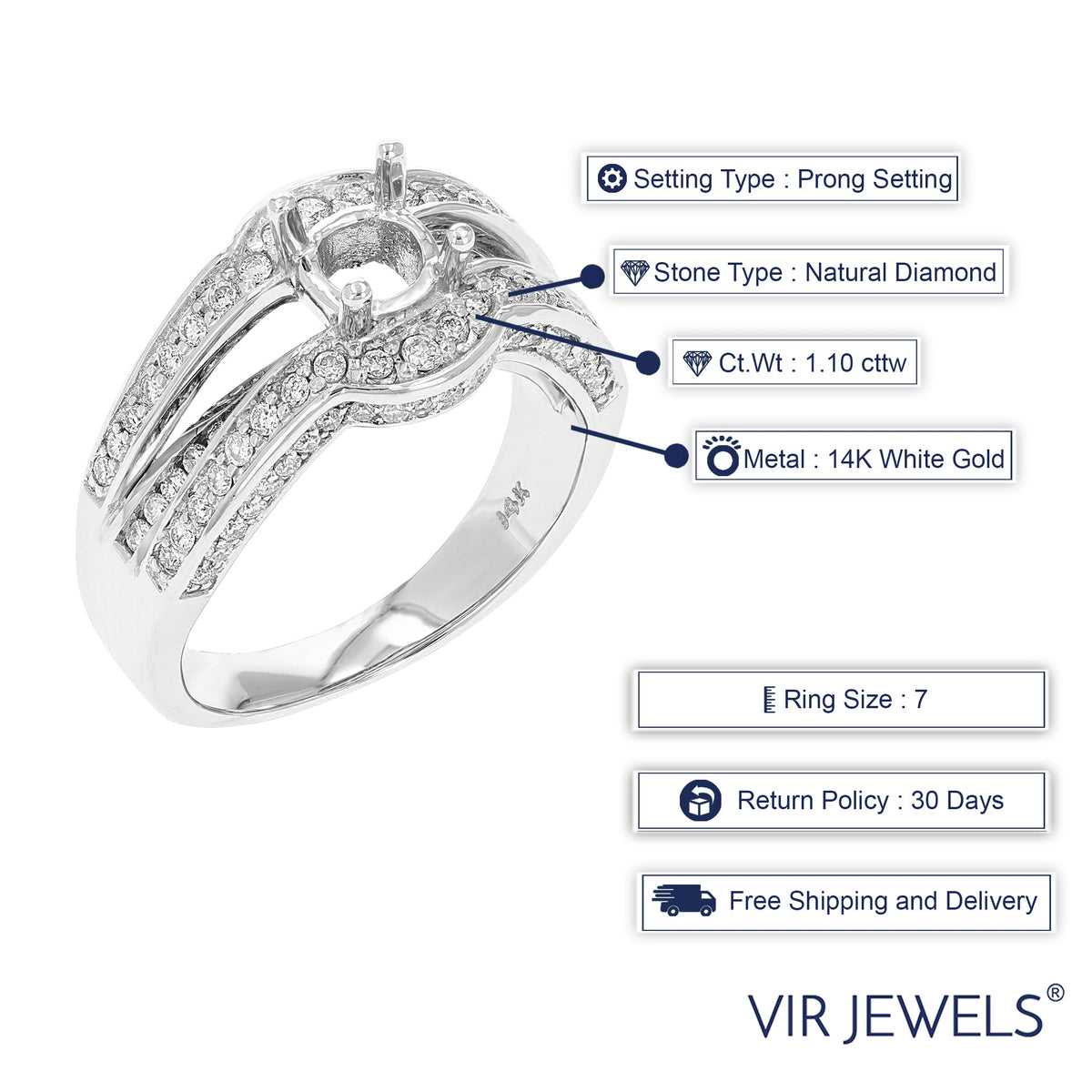This 1.10 cttw Semi Mount Diamond Engagement Ring by Vir Jewels is an elegant piece designed to showcase the brilliance of diamonds. It features 100 natural diamonds in a prong setting, with a center stone option for a round 0.90 cttw diamond. Set in 14K white gold, the semi-mount design allows for a customizable look, making it perfect for your forever commitment.