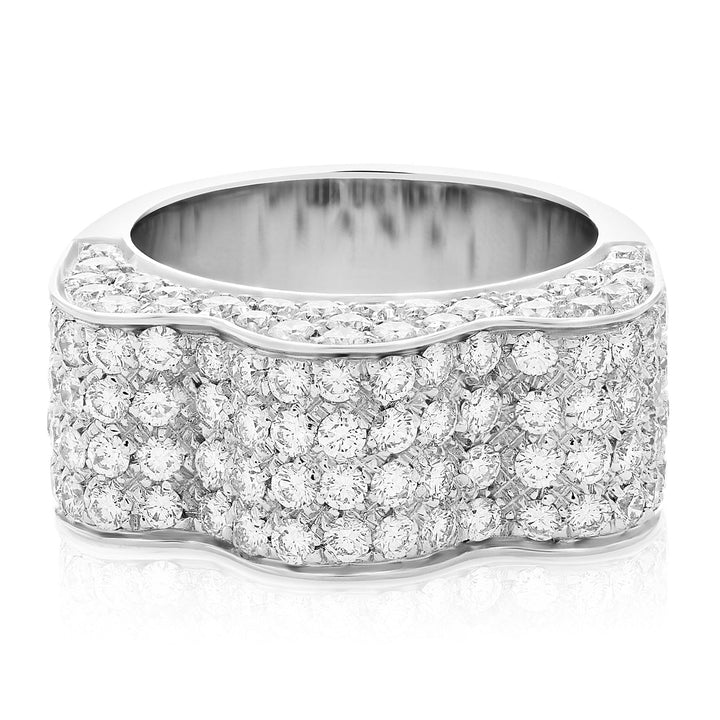 This 3 cttw SI1-SI2 Diamond Wedding Band by Vir Jewels features 144 round-cut diamonds set in a prong setting, creating a breathtaking sparkle. Crafted in 18K white gold, the ring has a width of 9.4mm, offering a bold yet elegant look. This stunning band is a perfect symbol of enduring love and commitment, ideal for wearing alone or alongside an engagement ring.