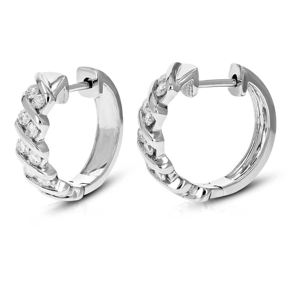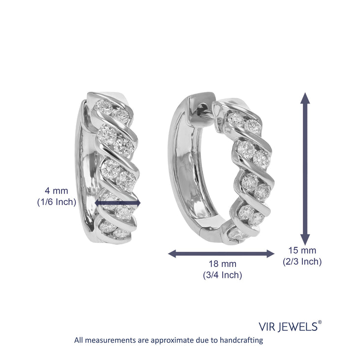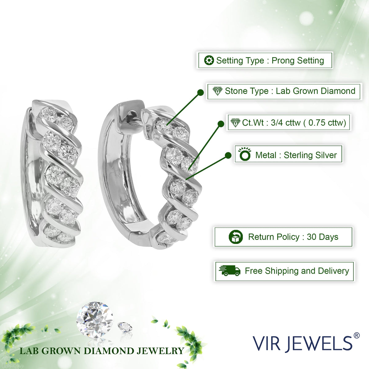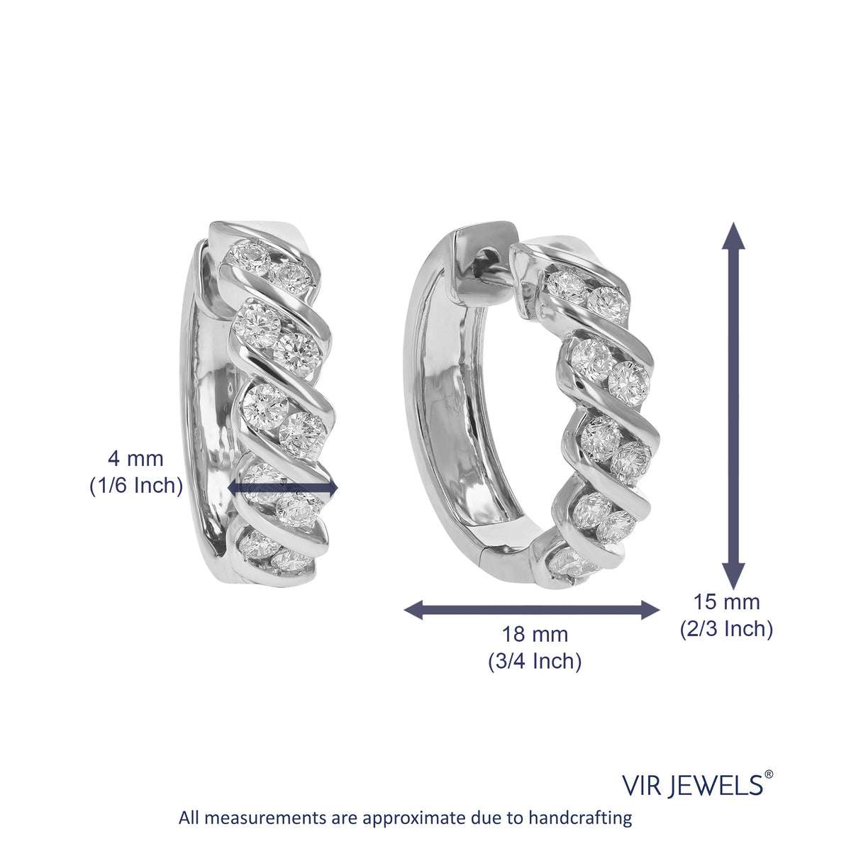 These 3/4 cttw Round Cut Lab Grown Diamond Hoop Earrings by Vir Jewels are a striking accessory that combines style and durability. The 20 round-cut diamonds are set in a channel setting, which securely holds them in place and enhances their brilliance. Crafted in .925 sterling silver, these earrings are both sophisticated and versatile. Perfect for any occasion, they offer a chic and charismatic look that can be worn with both casual and formal attire. The hoop earrings’ 18mm height and 4mm width provide a comfortable fit while making a bold statement.