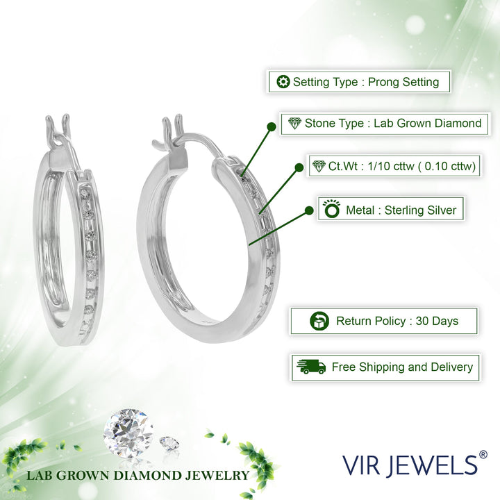 1/10 cttw Round Cut Lab Grown Diamond Hoop Earrings in .925 Sterling Silver Prong Set 1 Inch
