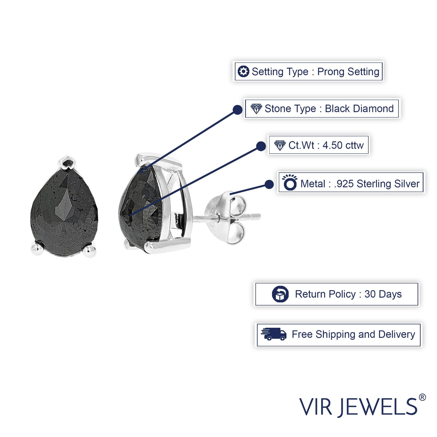 These 4.50 cttw Pear Shape Black Diamond Stud Earrings by Vir Jewels are an elegant and bold choice. Set in .925 sterling silver, the natural pear-shaped black diamonds sparkle with an intense shine. The earrings are prong-set and secured with push backs, perfect for any occasion. With their sleek design and unique color, these earrings are sure to make a statement.