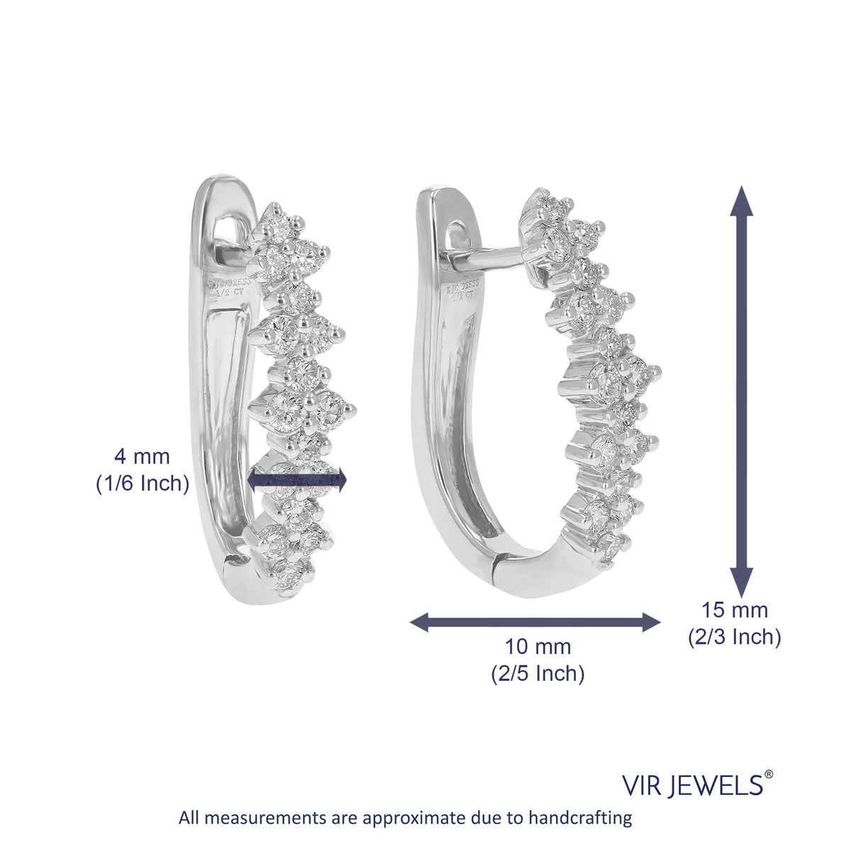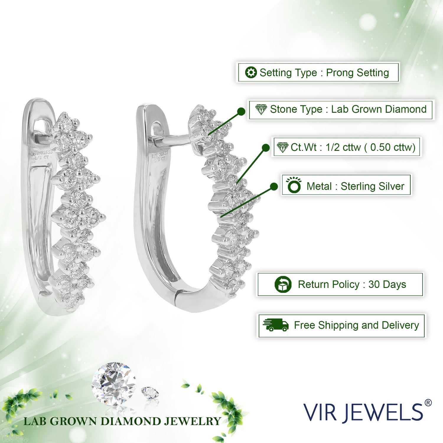 These Lab-Grown Diamond Hoop Earrings in Sterling Silver by Vir Jewels offer classic elegance with a contemporary touch. The round-cut diamonds sparkle brilliantly against the sterling silver setting, making them a refined choice for any occasion. Their versatile size ensures they complement both casual and formal ensembles, while the prong setting enhances the stones' brilliance. A chic and responsible choice for those who love the look of natural diamonds with a sustainable alternative.