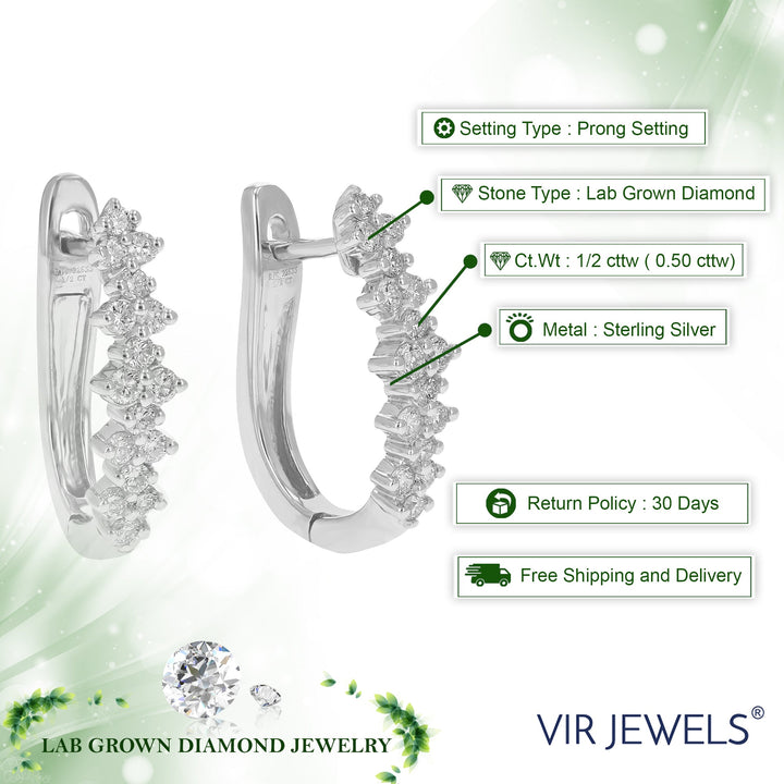 1/2 cttw Round Cut Lab Grown Diamond Hoop Earrings in .925 Sterling Silver Prong Set 2/3 Inch