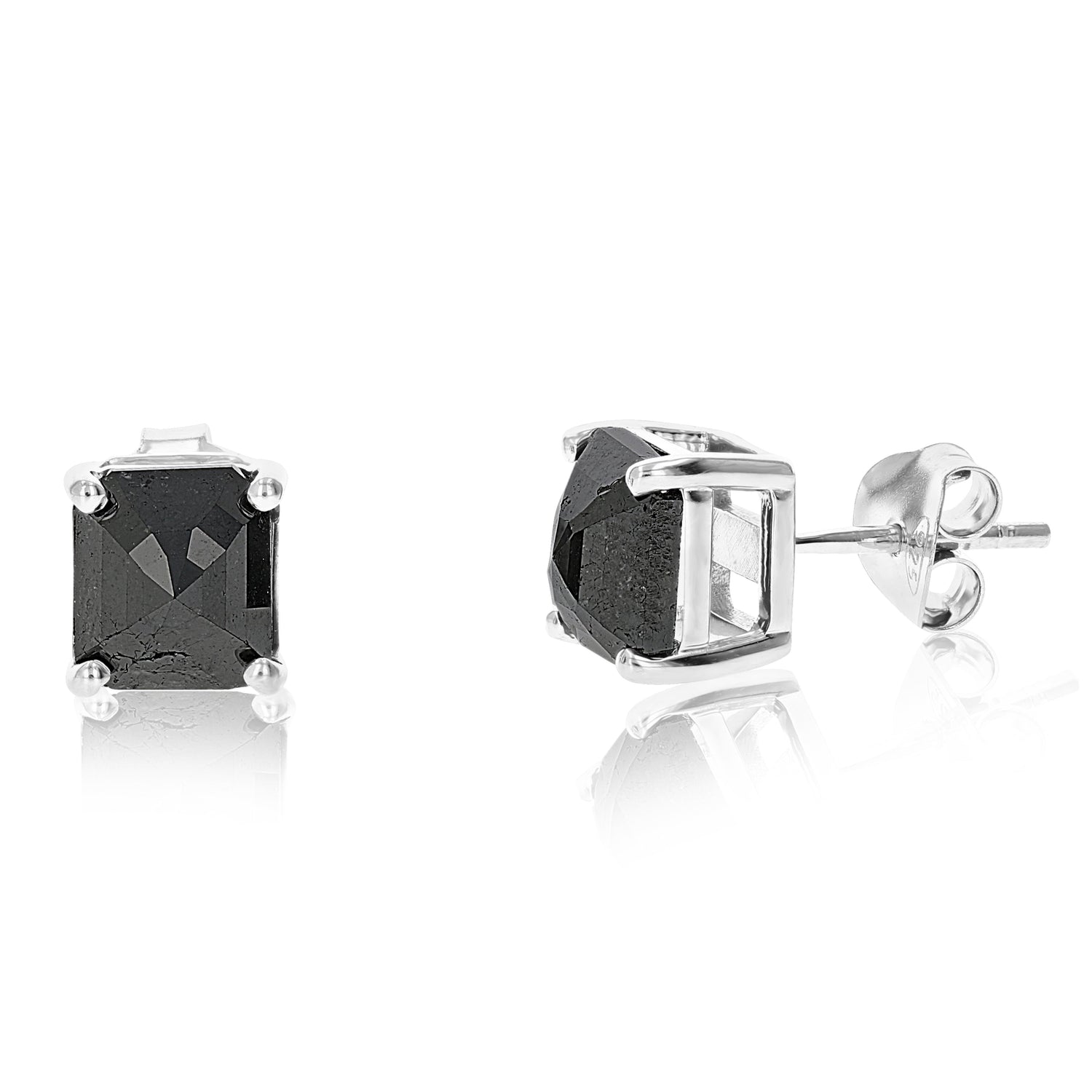 .925 sterling silver. 2.50 ct. total weight of princess-cut black diamonds. Diamond clarity: I1-I2. Size: 7mm width, 7mm length. Closure: Push-back.